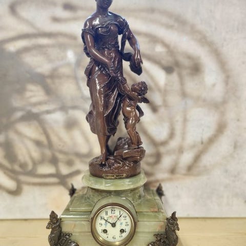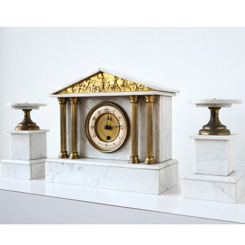 Ur - Art Deco Marmor, Messing - 1920-1930 - Kaminhyldeur