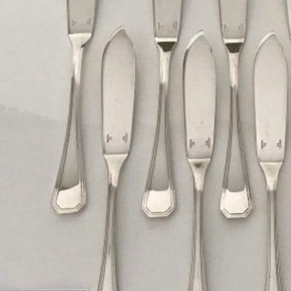 Christofle - Kagekniv (6) - Talisman knive 19,5 cm - Kinesisk lak, Forsølvet