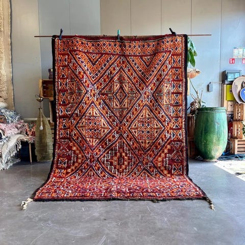 Morokko fra Marokko, håndknyttet tæppe af uld på bomuld, 197 cm × 151 cm, i særdeles god stand. Klik på den blå "gå til varen" knap, for at købe eller byde på denne vare. Den samlede pris vil blive vist inden du afgiver dit bud.