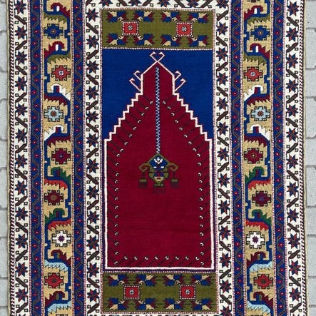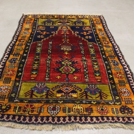 Dette er et håndknyttet østligt tæppe lavet af bæredygtige, naturlige materialer. Måden at knytte det på og mangfoldigheden i mønstrene gør dette tæppe unikt og understreger det autentiske og håndværksmæssige karakter.