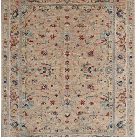 Meget stor, håndknyttet designer-tæppe fra Pakistan i moderne grå- og naturtoner. Fin vævning med elegant, klassisk mønster og blid farveforløb-udseende. Ideelt til rummelige opholdsrum.