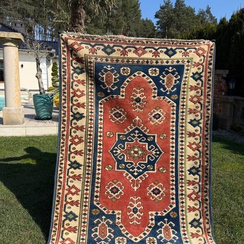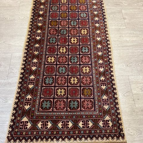 Nomaden-tæppe, vævet af Pomaken i Anatolien, Tyrkiet. Et meget eftertragtet og sjældent stykke fra 1960'erne. Denne type tæpper blev vævet med en blanding af materialer for at forhindre skadedyr i at trænge ind i dine telte. Meget nyttigt i haver, på balkoner, terrasser, men også til campingvogne, mobile homes eller hytter for moderne nomader.