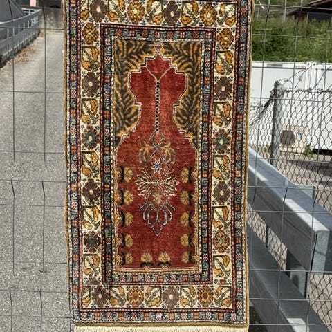 Håndklippet tæppe fra Kayseri, Tyrkiet, uld på uld, flerfarvet, 180 × 125 cm, ca. 1970, vægt 5 kg. Klik på den blå "gå til varen" knap, for at købe eller byde på denne vare. Den samlede pris vil blive vist inden du afgiver dit bud.
