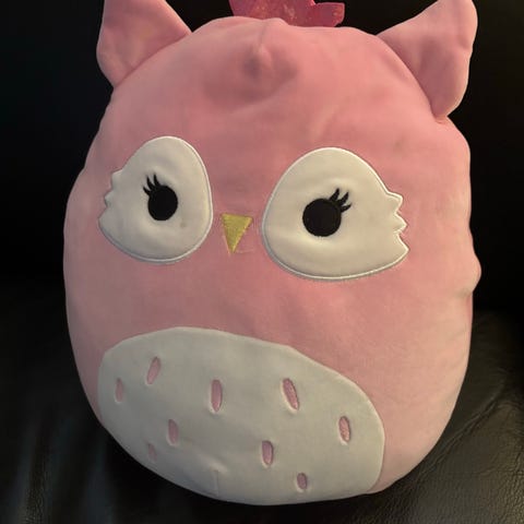 Squishmallows bløde plysfigurer i forskellige dyre- og fantasidesigns. Figurenes størrelser og farver varierer, og de er lavet af blødt materiale, egnet til børn.