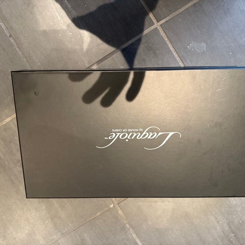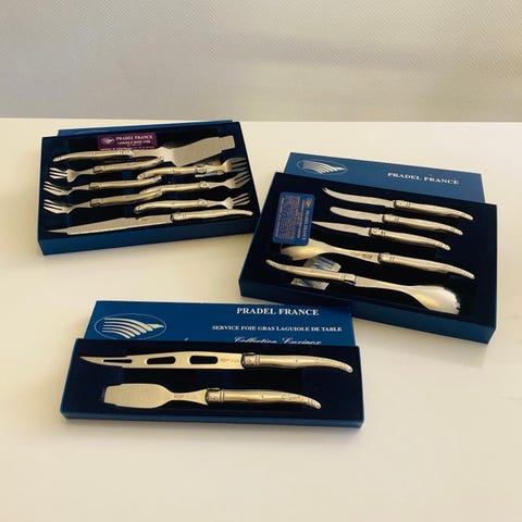 Services til at skære (smalle røde bokse): 'Laguiole kødservice' (servicekniv og -gafler).