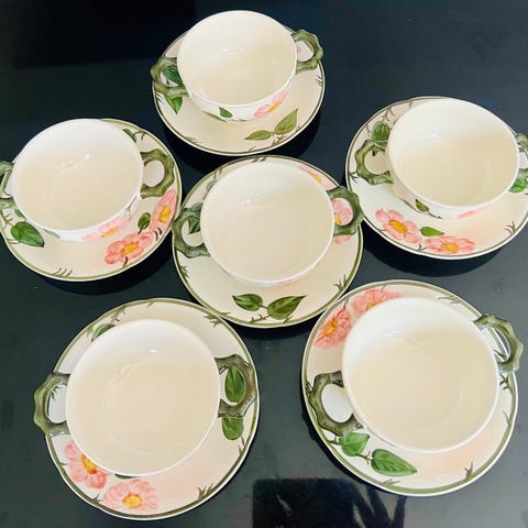 Faïence de Boch La Louvière, model Kimono, er en sand skat for faïence-elskere. Eksklusivt stel, der er sjældent at finde, kendetegnes ved sin elegance og håndværksmæssige charme, da det er helt håndmalet, og de rene, intense nuancer fremkalder en orientalsk stil. Fra midten af det 20. århundrede, omkring 1970, er det i fremragende stand uden skader!