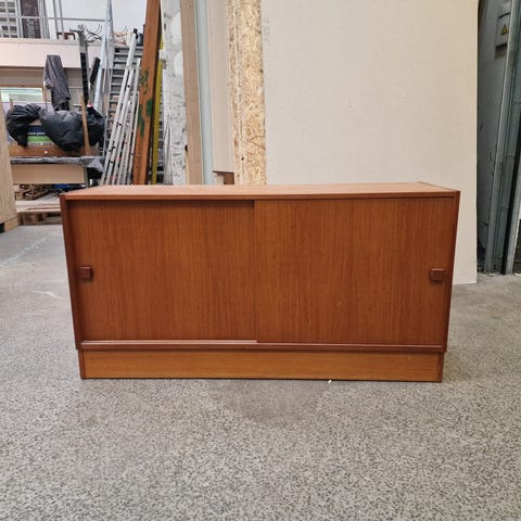 Lille kommode med fire skuffer og kantede greb, teak, Domino #2