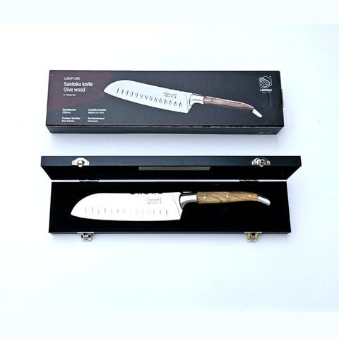 Laguiole - Santoku Knife - with cutting board - Olive Wood - Køkkenkniv - Rus...