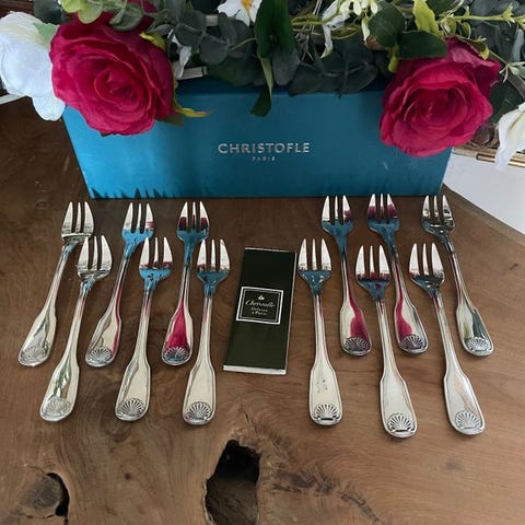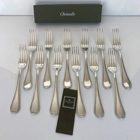 Christofle - Gaffel - Sæt med 12 middagsgafler model Spatour. - Forsølvet