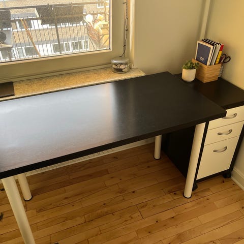 “Hjemmelavet” skrivebord m. IKEA skuffelementer og IKEA bordplade.