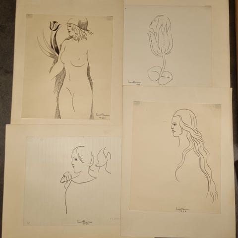 Ernst Hansen. Original tegning 1923. Pige på skøjter