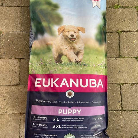 Uåbnet kvalitetsfoder til mellemstore hunde fra Eukanuba. Sælges da hvalpen er blevet voksen. Holdbarhed: 8/10 2026.