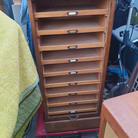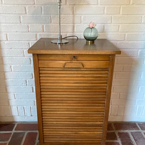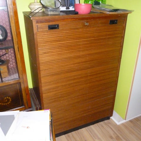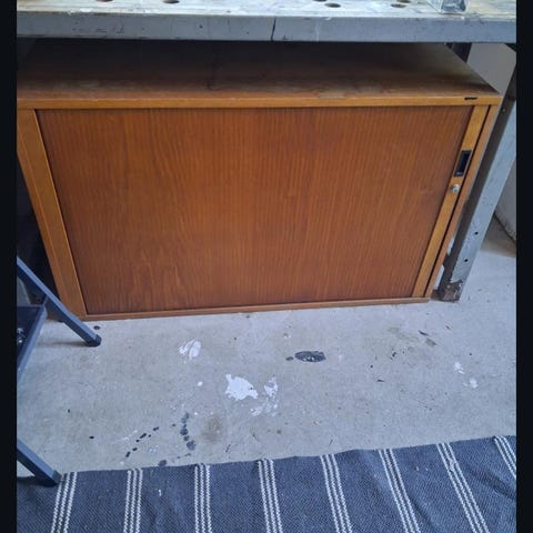 Jalousi skab, Pæn og velholdt jalousi skab i teaktræ..komplet med lås.