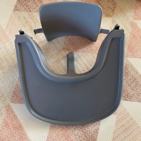 Stokke højstol tilbehørssæt bestående af bakkebord, sele, bøjle, ryglæn og antivippe fødder. Tilbehøret er designet til at passe til Stokke højstol fra 2003 og fremefter.