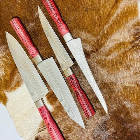 I denne knivpakke får du fire, lækre knive i høj kvalitet. En kokkekniv, en santokukniv, en utilitykniv og en brødkniv.