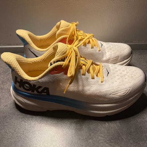 HOKA Clifton 9 dame kun brugt på 1 enkelt løbetur på 10km men passer desværre ikke min fod.