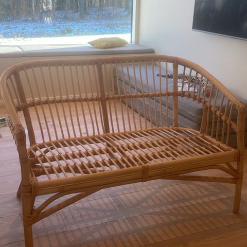 Skøn og indbydende bambus sofa sælges. Den har kun været brugt meget lidt og fremstår derfor som næsten ny. Sofaen kommer fra et ikke-ryger hjem og er velholdt uden skader.