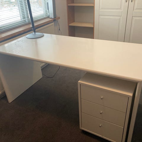 Montana skrivebord i hvid med enkel og funktionel design. Bordet har en glat overflade og er velegnet til kontor- eller hjemmearbejde. Bordet er 180 cm. langt, 80 cm bredt og 72 cm højt.