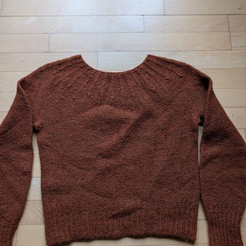 Trøjen er strikket oppefra og ned, så længderne et tilpasset.