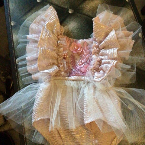 Next Lyserød Bomuld Pige Romper i størrelse 74. Romperen er lavet af bomuld og designet til piger. Den har korte ærmer med flæser og en knaplukning bagpå for nem påklædning.