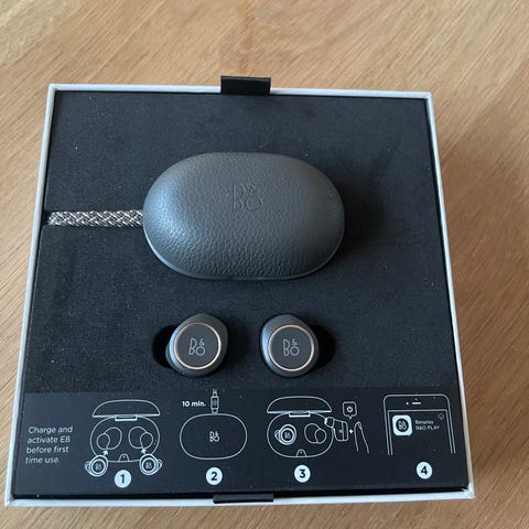 Bang & Olufsen Beoplay E8 Sport trådløse høretelefoner i sort. Høretelefonerne er designet til sport og aktivitet med trådløs forbindelse og kompakt opladningsetui. Leveres med ekstra tilbehør og udskiftelige ørepropper. Lidt slid og ridser, men virker perfekt som de skal. Kan afhentes k København og omegn eller sendes:)