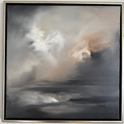 Flot og meget dramatisk oliemaleri sælges. Har to i samme serie - hvis det skulle have interesse. Der er et meget lille hak i rammen, som let kan fjernes.