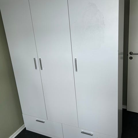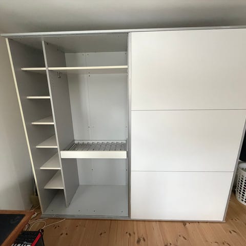 Garderobe skab med to hylder og bøjlestang. Det kan evt. sættes flere hylder i.