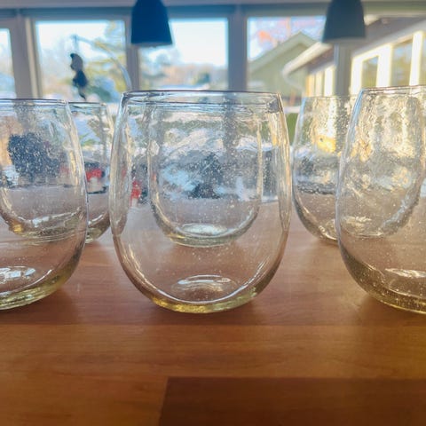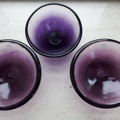 Kander og skåle fra glaspuster Pernille Bastrup, Gudhjem glasrøgeri