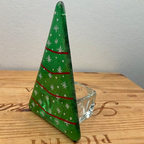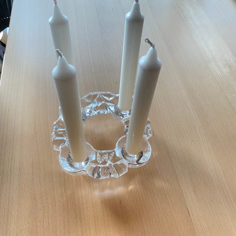 Helt intakt ældre glasstage i dæmpet orange farve. Både til fyrfads- og kronelys.