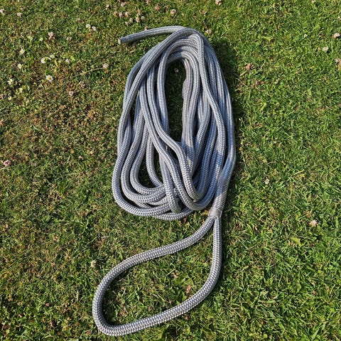 Blytov i hele længden, 15-16 mm, 30 meter langt, vægt ca 11 kg, rustfri kovs i den ende ende.