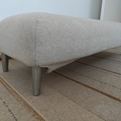 grå puf med cognac farvet læder håndtag hentes i Valby jeg sender ikke