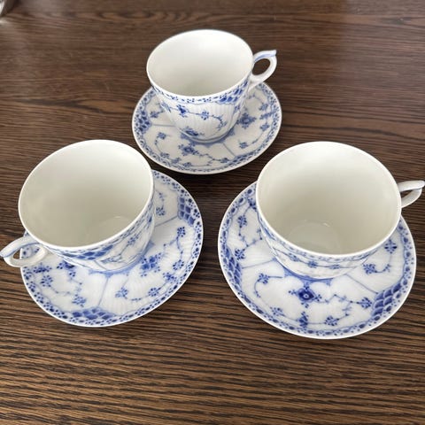 Royal Copenhagen Musselmalet Riflet Kaffekop med underkop