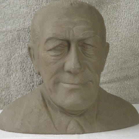 Sparemand, Per Hækkerup, 1974, fremstillet af Keramikfabriken Søholm for Bikuben, og er en del af serien kaldet: "Årets Sparemand". Sparebøssen er i meget flot stand- med hel cigar.