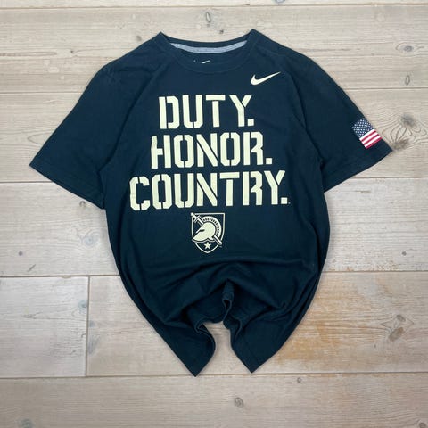 Nike, Army, Duty Honor Country, Military, USA Flag, Frontprint, Text Print, Swoosh, Navy, T-Shirt