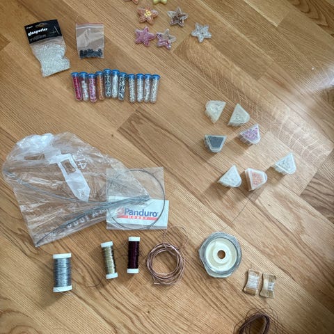 Panduro perler i guld og rød farve, velegnet til smykkefremstilling og andre kreative projekter. Perlerne er pakket i små plastikæsker for nem opbevaring og brug. tre guld og tre røde pakker