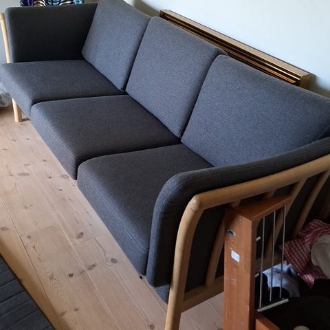Sofaen er godt brugt og har tydelige, men helt normale brugsspor i stoffet, hvilket også afspejles i prisen. Der er ingen større skader eller defekter – sofaen er solid, funktionel og klar til mange flere år i ny bolig, men fremstår ikke som ny.