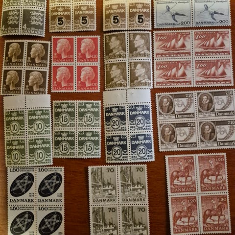 Danmark, fireblokke, postfriske
