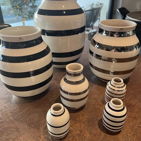 Kähler vaser i sort og hvid stribet porcelæn