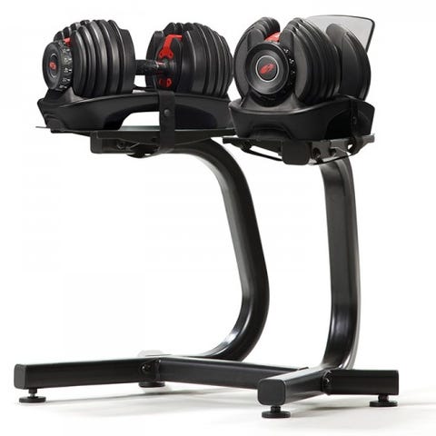 1 styk Bowflex SelectTech Justerbare håndvægte med en vægtkapacitet fra 4-41 kilo. Farve: sort. Materiale: metal og plast. Justerbar vægt til styrketræning.