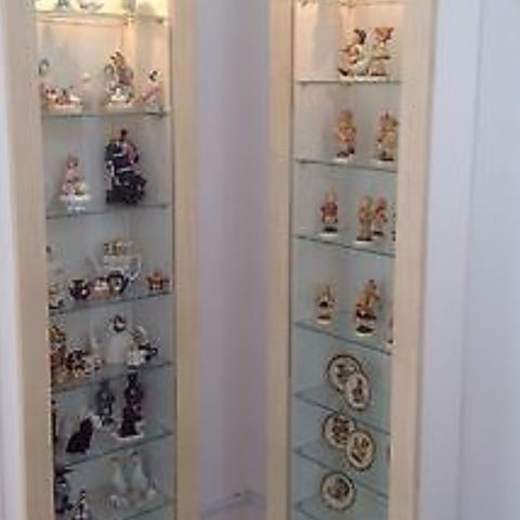 Bemærk kun 5 glas hylder haves ialt til begge skabe