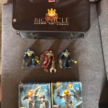Lot Lego bionicle med mange dele der er 5 bøtter 3 er tomme . Der mangler dele på dem alle men det er i pæn stand og der er hvad i ser på billederne som er en del af beskrivelsen