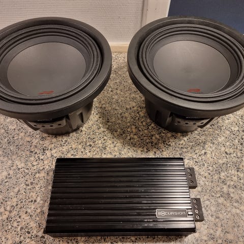 Komplet anlæg til bil: subwoofer, diskant, kondensator, forstærkere