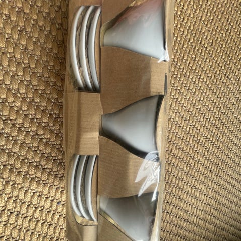 IKEA espressokopper og underkopper i hvidt porcelæn. Sættet består af fire kopper med tilhørende underkopper. Materialet er porcelæn.