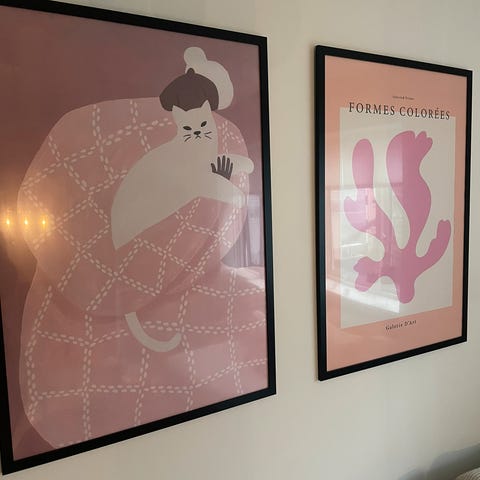 2 Smukke grafiske billeder i ramme søger et nyt hjem.