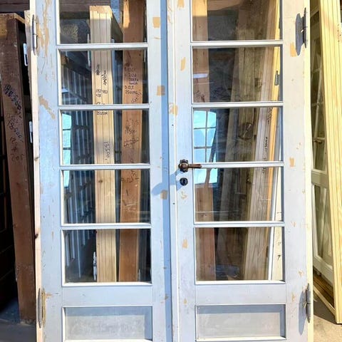Smuk dobbeltdør m. store glaspartier og karm, B:129, H:206