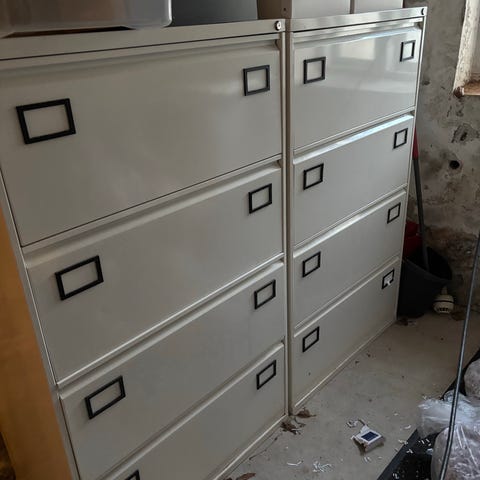 Fint lille orange arkivskab i metal med 6 bakkeskuffer