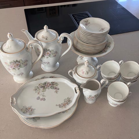 Porcelæn Kaffesæt med Tekande, Sukkerskål, Flødekande og Kopper