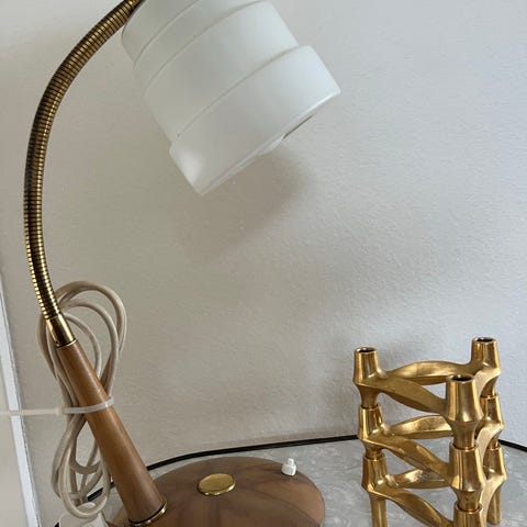 Vintage bordlampe med opalglasskærm