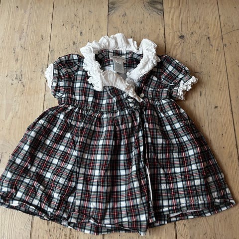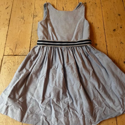 Ralph Lauren kjole i størrelse 110 til piger. Kjolen er blå og lavet af bomuld. Den har knapper foran og et gul-stribet bælte i taljen. Ærmerne er lange med knapper ved manchetterne. Fra røg og dyrefrit hjem. Kan afhentes i Brøndbyvester eller sendes for købers regning.