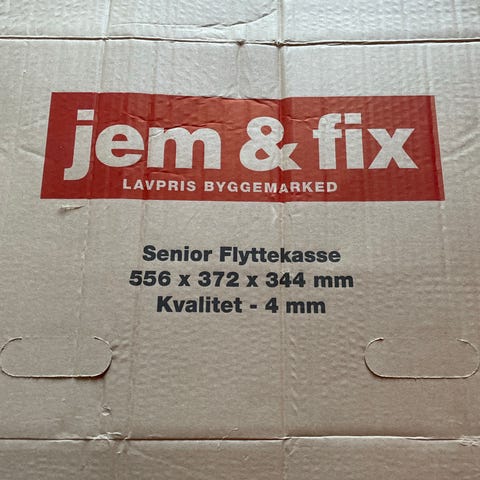 ca 50 flyttekasser, Jem & Fix senior 584x372x374, 7 mm ekstra kraftige - brugt 2 gange internt i huset - dem er der ca 40 af og så 10 andre